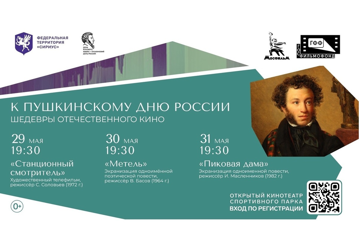 Как рассказали в официальном Телеграм-канале федеральной территории, на серии показов можно попасть бесплатно по предварительной регистрации. В программу вошли фильмы «Станционный смотритель», «Метель» и «Пиковая дама». Показы начнутся 29, 30 и 31 мая в 19:30 в открытом кинотеатре Спортивного парка.