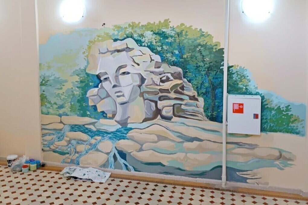 Стену здания курорта «Мацеста» в Сочи расписали студенты института РУДН. Они воплотили свою задумку в образном портрете Мацесты. Об этом сообщает администрация курорта.