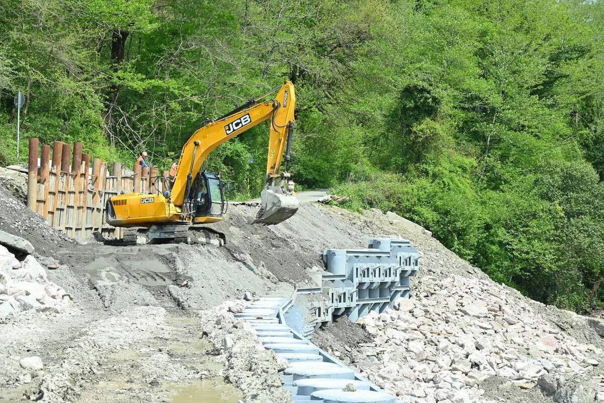 «Уже завершено берегоукрепление, включая сооружение низовой подпорной стены, идёт укладка дорожных плит. Работы ведутся строго по графику. Строители применяют современные решения, которые учитывают близость реки и повышают защиту инфраструктуры на годы вперёд. Новые инженерные сооружения прослужат десятилетиями, обеспечивая безопасность и комфорт жителей», – резюмировал мэр курорта.