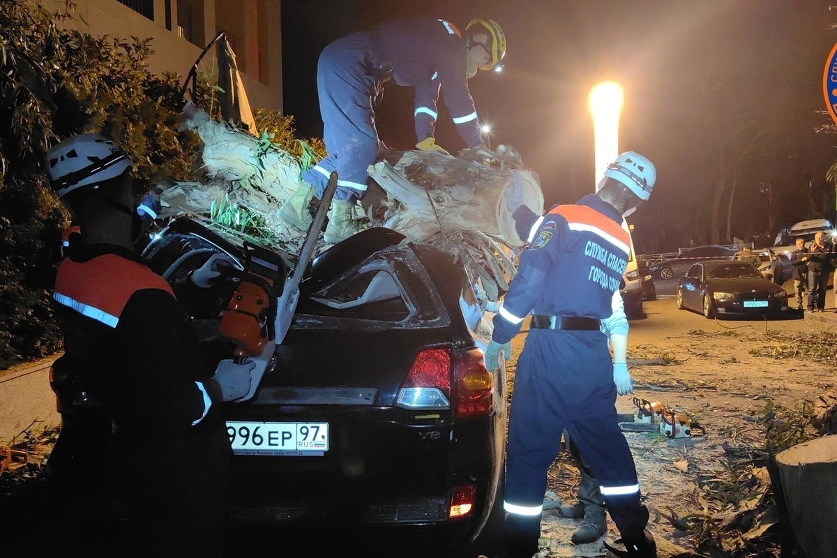 Как рассказали в соцсетях службы спасения Сочи, специалисты прибыли на место и установили световую башню. После этого дерево аккуратно распилили с использованием бензопил. Машины деблокировали, а участок проезжей части снова свободен для проезда.