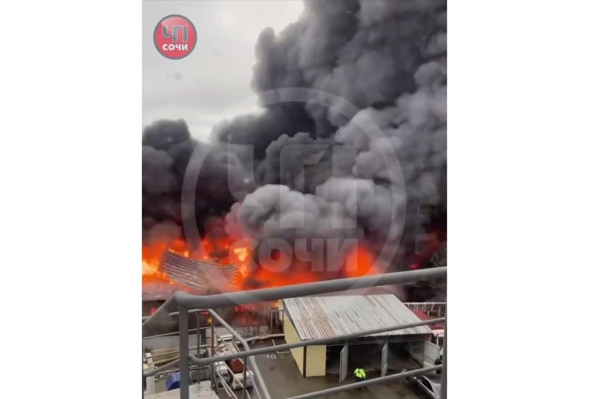 Как сообщили в пресс-службе ГУ МЧС по Краснодарскому краю, площадь пожара составляет 1 000 квадратных метров. По данным МЦУ курорта, пламя перекинулось на складские помещения и здание, находящиеся по соседству.