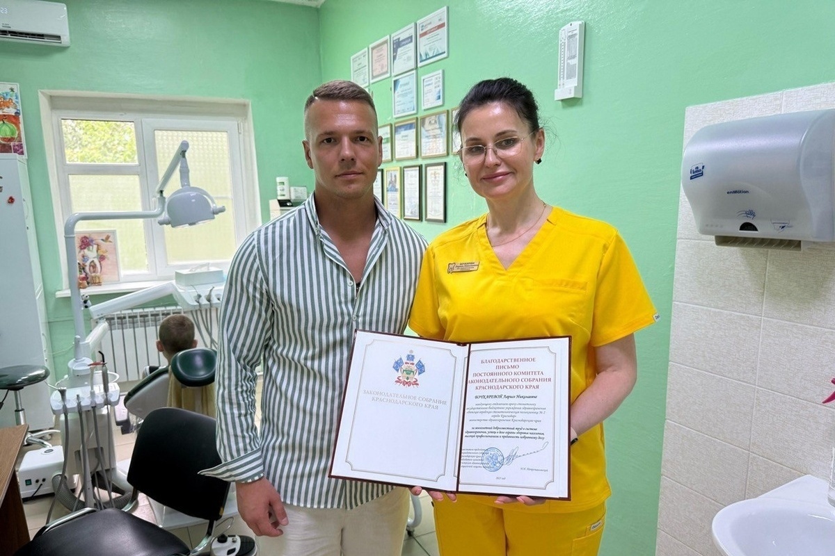 Депутат Законодательного Собрания Краснодарского края Станислав Гринев поздравил врачей с Днем медицинского работника. Парламентарий вручил благодарственные письма от комитета ЗСК врачам Детской городской стоматологической поликлиники №2 и Детской городской поликлиники №8.