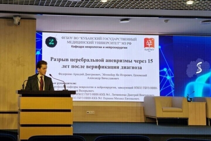 Кубанский государственный медицинский университет на форуме представили Аркадий Федоренко и Ян Эйтенейер от кафедры неврологии и нейрохирургии. В рамках форума они представили интересный клинический случай на тему «Разрыв церебральной аневризмы через 15 лет после верификации диагноза», вызвавший живой интерес у участников и экспертов.