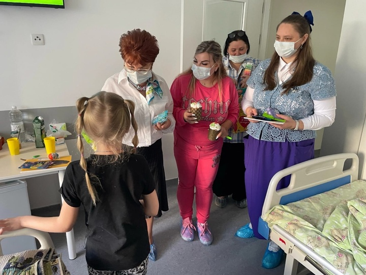 Маленьким пациентам Галина Глущенко и активисты принесли куличи и подарки.