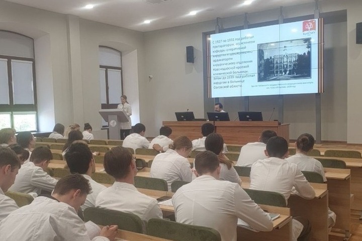 В среду, 23 апреля, в КубГМУ состоялась студенческая научно-практическая конференция, приуроченная к 80-й годовщине Победы советского народа в Великой Отечественной войне. Организаторами мероприятия выступили сотрудники кафедры мобилизационной подготовки здравоохранения и медицины катастроф, кафедры философии, деканат стоматологического факультета, библиотека КубГМУ, а также члены студенческого патриотического клуба «МЕДСАНБАТ».