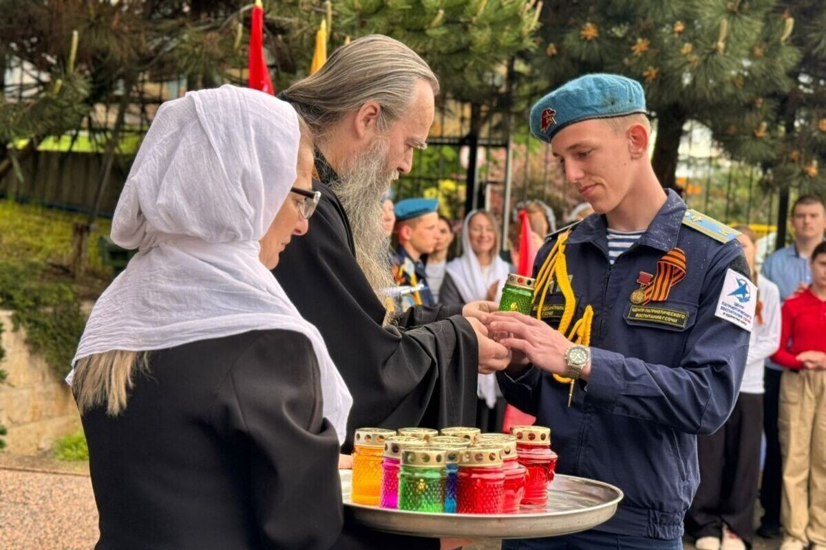 Благодатный огонь зажгли на территории Храма святого праведного воина Фёдора Ушакова. Его воспитанники хостинских военно-патриотических клубов доставят на братские захоронения фронтовиков.