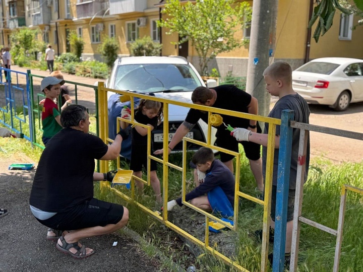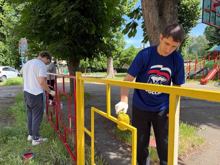 Участники субботника провели покраску ограждения площадки. Все необходимые материалы – от мешков для мусора до краски – были предоставлены Андреем Арендаренко.