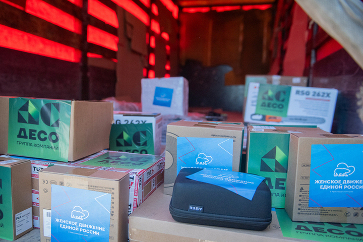 В рамках восьмой гуманитарной миссии в Крым представители общественных и региональных организаций передали бойцам зенитно-ракетного полка оборудование для создания лаборатории беспилотных технологий в зоне специальной военной операции. Помощь оказана компанией «ДЕСО», а доставку осуществили активисты «Женского движения Единой России» по Краснодарскому краю.