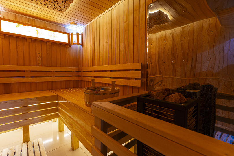 6. В «Атлантиде» есть финская сауна с бассейном. Это аромат нагретой древесины, это ощущение чистоты внутри и снаружи. Прогревание в сауне положительно влияет на нервную систему и улучшает сон, способствует похудению и помогает расслабиться с дороги.