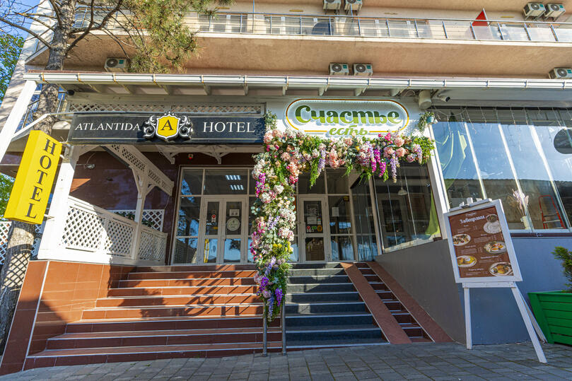 4. В отеле «Атлантида» туристов ждут разнообразные услуги, которые сделают отдых особенным. Насладиться вкусной кухней можно в семейном кафе на первом этаже «Счастье есть».
