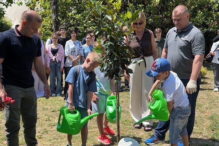 В Сочи на Аллее космонавтов в парке «Ривьера» высадили магнолию. Церемонию высадки выполнили космонавты Иван Вагнер и Алексей Овчинин.