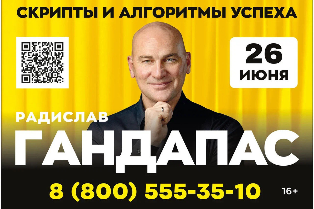 В зале «Орбита» гостиницы «Crowne Plaza» в Краснодаре 26 июня пройдет тренинг самого известного в России специалиста по лидерству Радислава Гандапаса. Мероприятие «Скрипты и алгоритмы успеха» посвятят ключевым аспектам достижения профессиональных и личных побед.