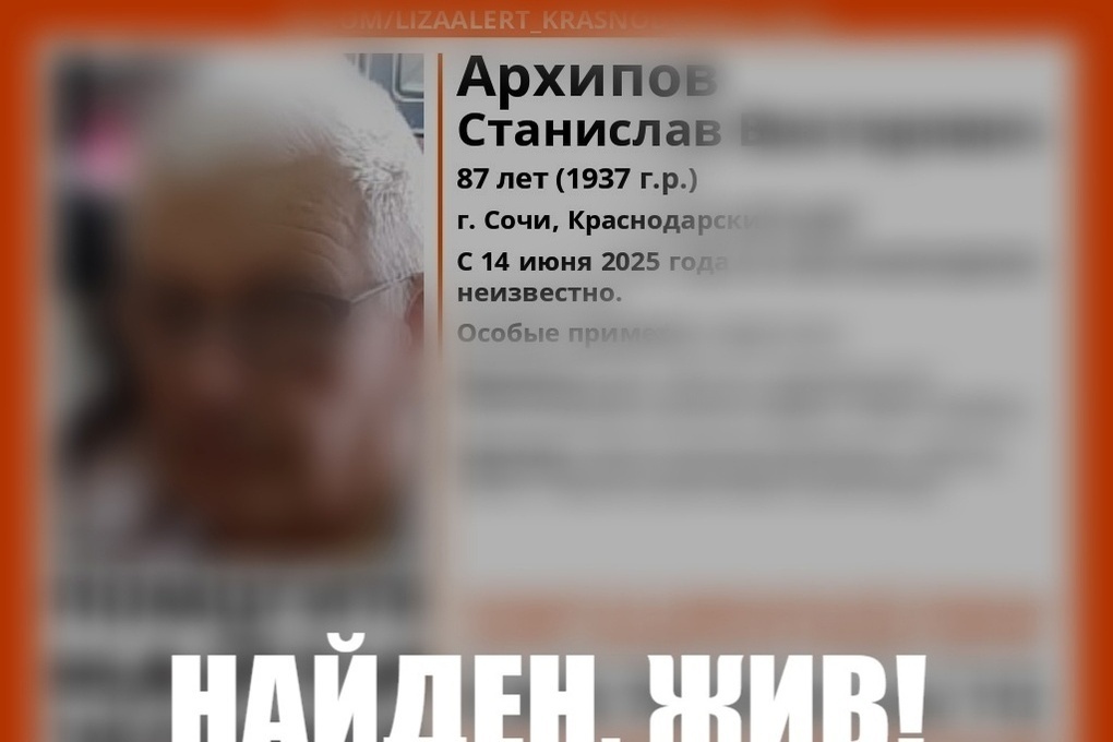 Стала известна пропавшего ранее в Сочи 87-летнего Станислава А. По информации поискового отряда «ЛизаАлерт», он жив.