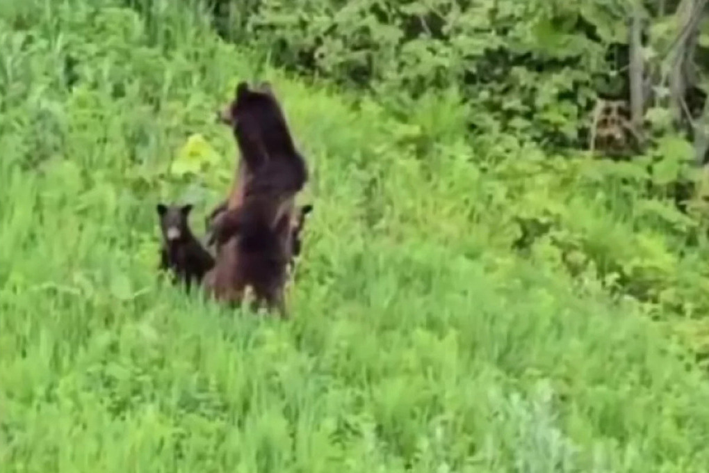 В горах Сочи туристы заместили гуляющую медведицу с детенышами. Видео с животными на прогулке разместили в соцсетях.