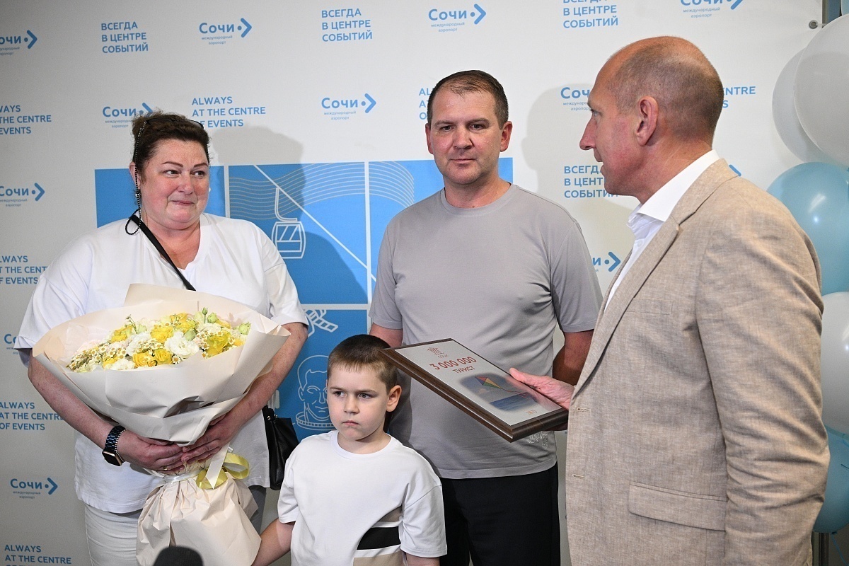Сочи с начала 2025-го года посетил трёхмиллионный турист. Юбилейным гостем стал Юрий Пирог из Москвы. Мужчина прилетел из столицы на отдых с женой и внуком.