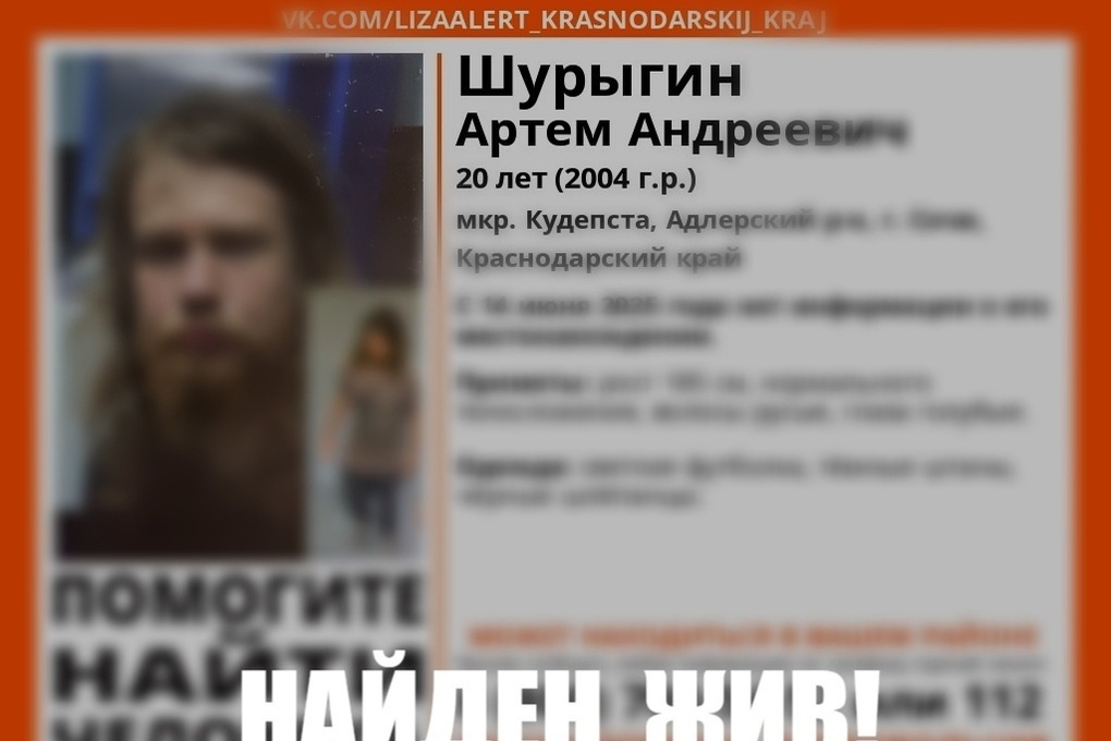 Стала известна судьба 20-летнего Артёма Ш., который пропал ранее в посёлке Кудепста Сочи. По информации поискового отряда «ЛизаАлерт», его нашли, он жив.