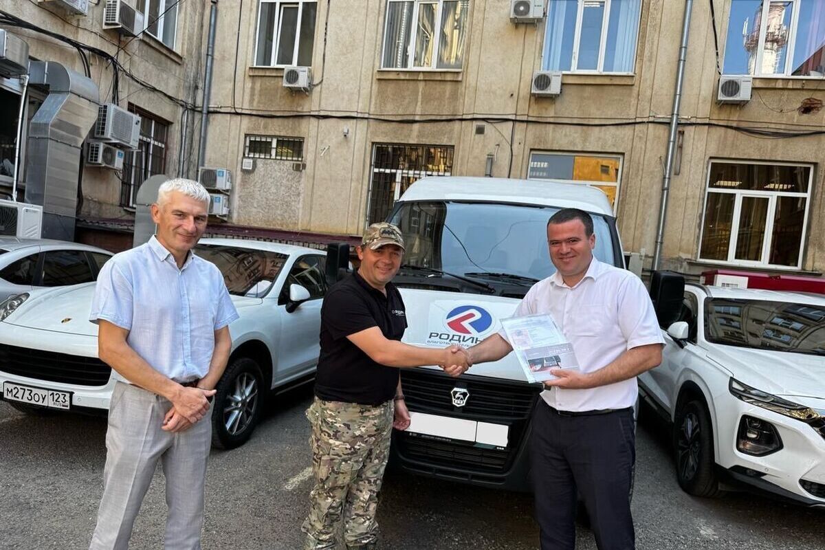 Сегодня состоялась торжественная передача полноприводного автомобиля «Соболь» от ЮГ- Инвестбанка Благотворительному фонду «Родина». Транспортное средство будет использоваться для доставки гуманитарной помощи участникам специальной военной операции непосредственно на передовую.