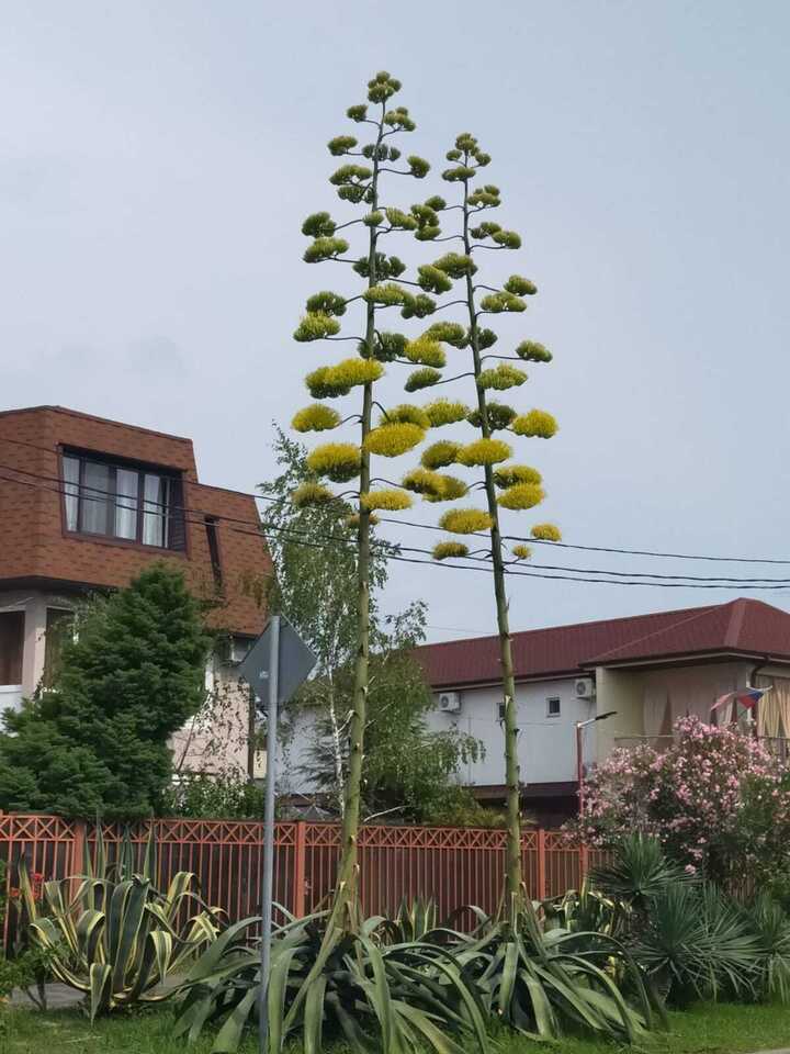 В Сочи зафиксировано уникальное природное явление — одновременное цветение сразу нескольких агав, что является редкостью и привлекает внимание местных жителей и специалистов. Так, в Адлерском районе города на одной из придомовых клумб одновременно зацвели шесть агав, высота которых достигает около 10 метров.