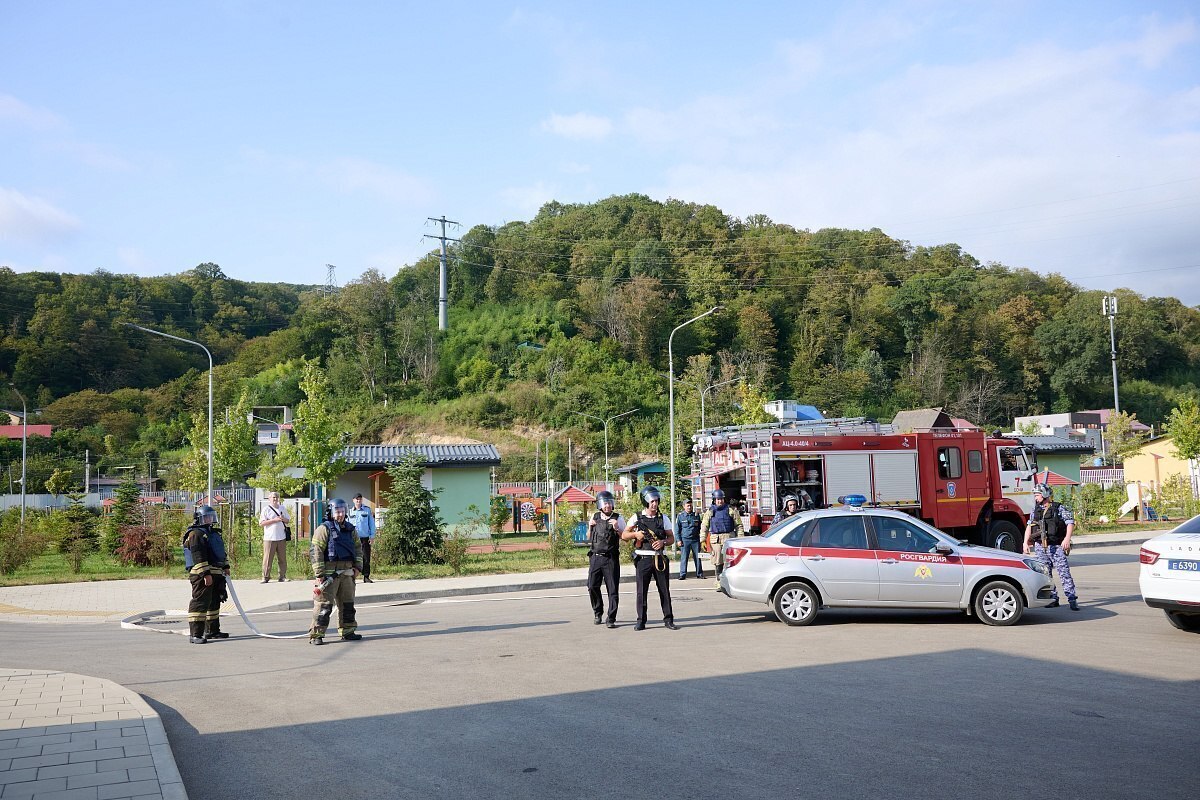 В мероприятии приняли участие полицейские, росгвардейцы и сотрудники МЧС. Педагоги и охрана отработали алгоритмы по обеспечению безопасности детей и эвакуации воспитанников в безопасные зоны при различных угрозах. В Сочи такие антитеррористические учения проводятся уже третий год подряд. В этом году в тренировках участвовали более 6 000 педагогов из 166 образовательных организаций города. Также аналогичные занятия пройдут с участием детей во всех школах курорта уже 3-го сентября, сообщили в социальных сетях муниципалитета курорта.