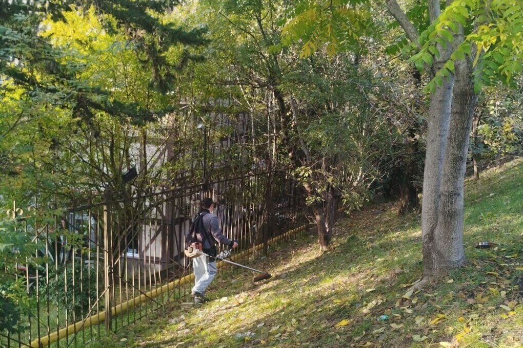 В рамках ухода за зелеными насаждениями осуществлена уборка зеленых зон по улице Черноморская и в парке Фрунзе, а также формовочная обрезка кустарников по улице Черноморская.