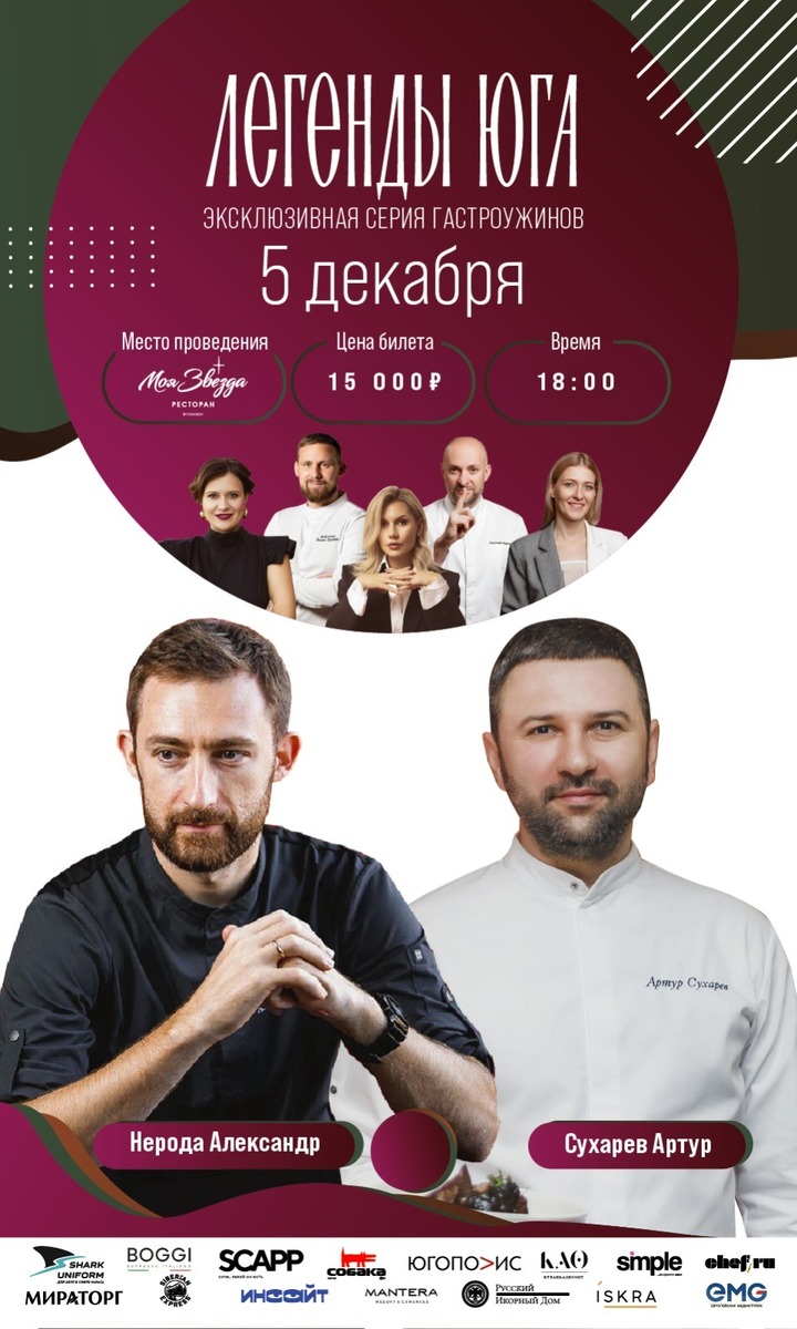 Рестораны «Винотеррия» и «Моя Звезда by Novikov» представляют «Легенды Юга» — грандиозный гастропроект, который объединит самых заметных и самобытных шеф-поваров юга страны.