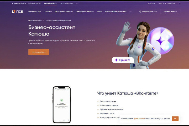 В 2025 году ПСБ первым на рынке в сегменте МСБ внедрил в чат-бота для бизнеса технологию RAG, что позволило в восемь раз увеличить решение вопросов пользователей. В текстовый чат-бот были добавлены новые опции: в частности, бизнес-ассистента научили решать технические вопросы, связанные c торговым эквайрингом, предлагать оптимальный тарифный план при открытии счета, создавать контент-план для соцсетей и описание вакансий. Также ПСБ провел редизайн «Катюши»: через образ русской красавицы в футуристичном костюме банк демонстрирует синергию национальной идентичности и новых технологий.