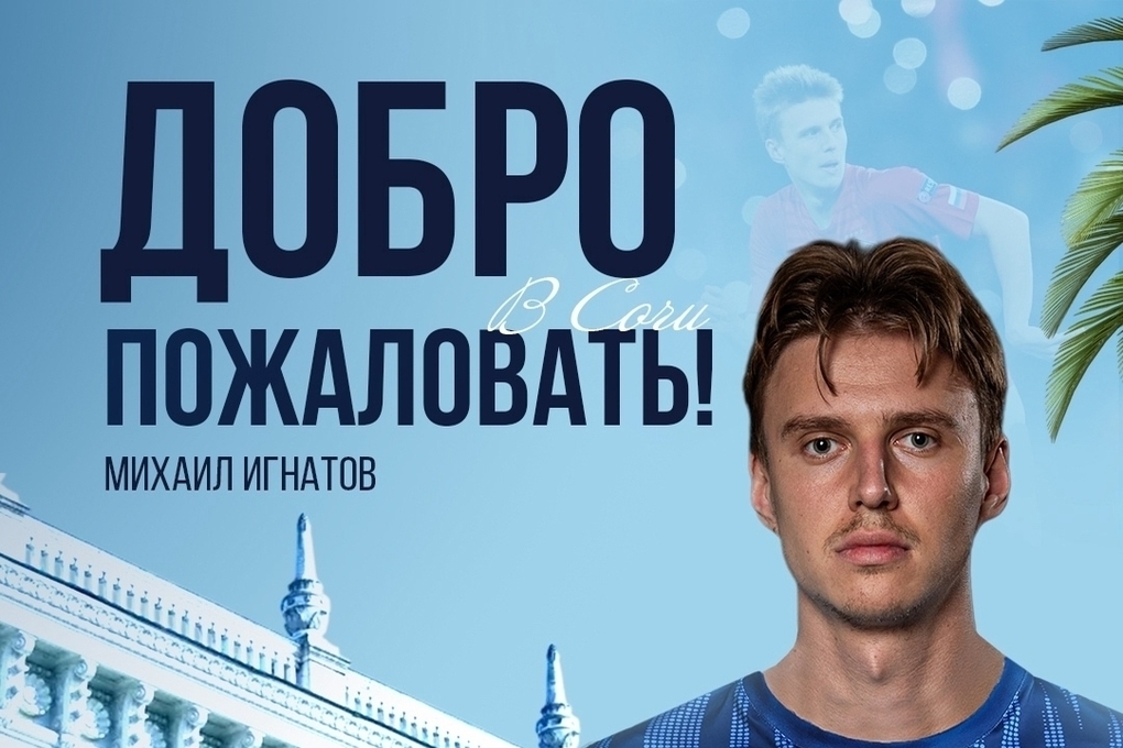 Состав футбольного клуба «Сочи» пополнил полузащитник Михаил Игнатов. По информации пресс-службы «барсов», соглашение подписано сроком на три года. Хавбек будет играть под восьмым номером. Он перешёл в стан сочинцев свободным агентом.