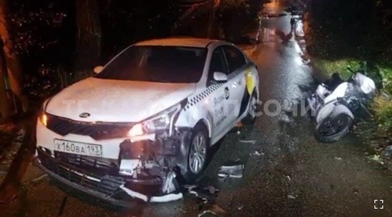 В ночь на 5 февраля водитель скутера въехал в автомобиль "КИА" и скрылся с места ДТП. Видеоматериалом поделились очевидцы из Telegram-канала "ЧП Сочи".